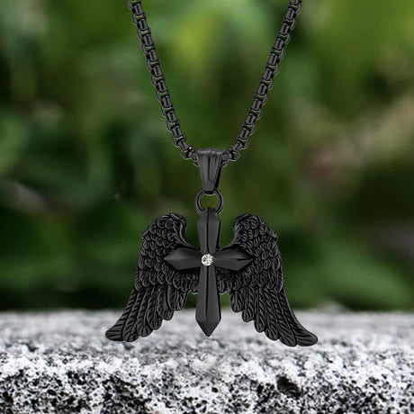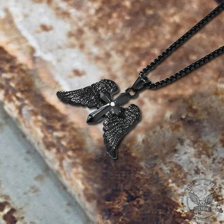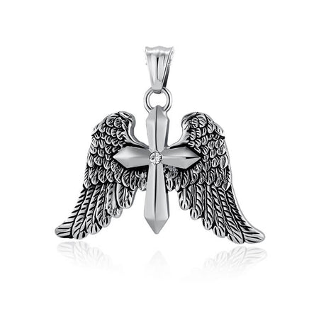 Vintage Cross Angel Wings Stainless Steel Pendant