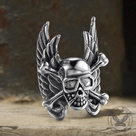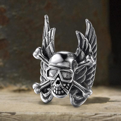Winged Skull Stainless Steel Ring