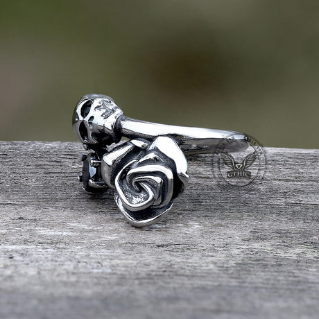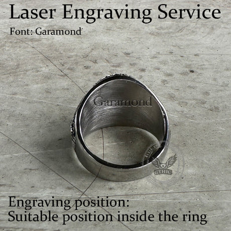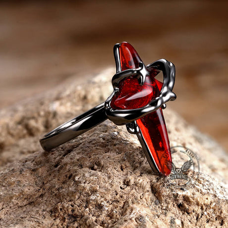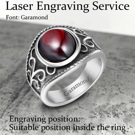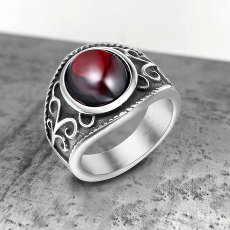 Vintage Engraved Flowers Ruby Stainless Steel Ring
