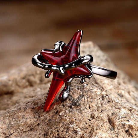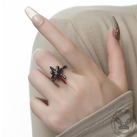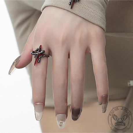 Gothic Thorns Four-Pointed Star Alloy Open Ring