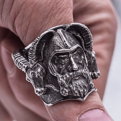 Nordic Goat Warrior Stainless Steel Skull Vikin...