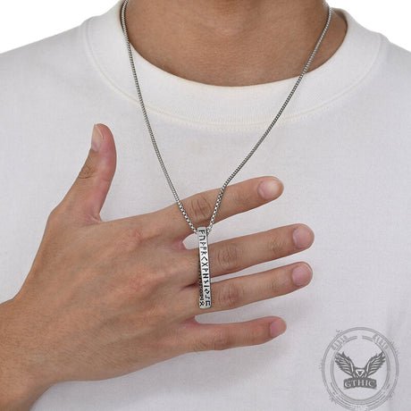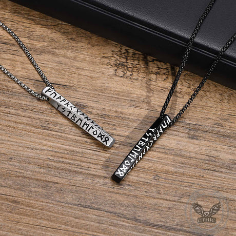 Viking Runes Mobius Bar Stainless Steel Necklace