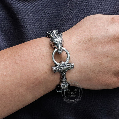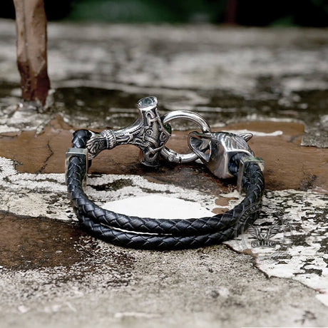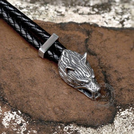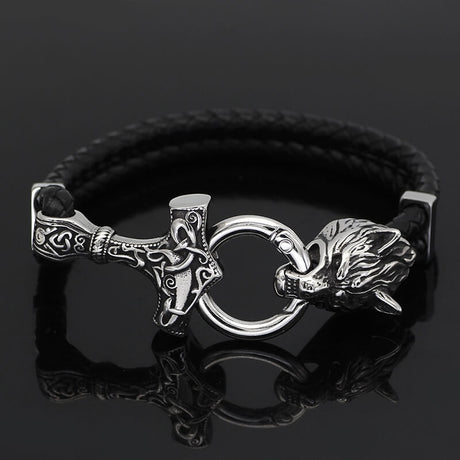 Viking Wolf Head Stainless Steel Leather Bracelet