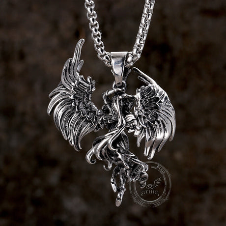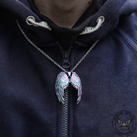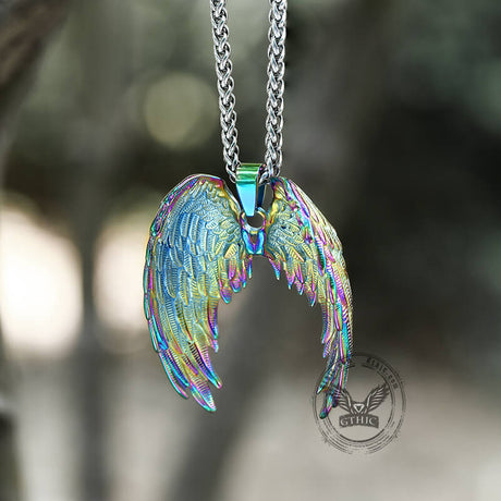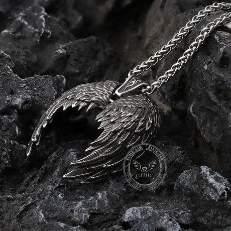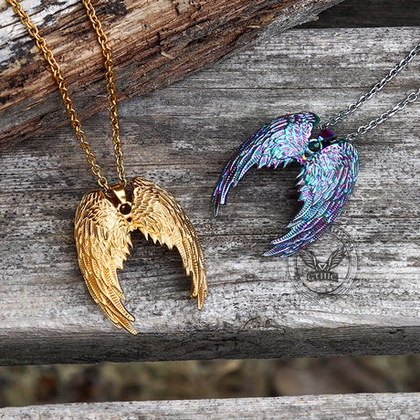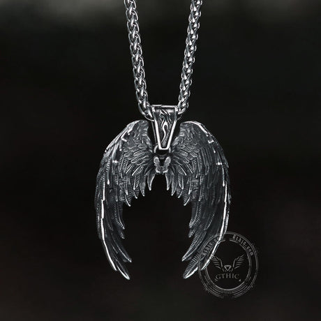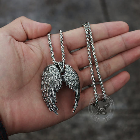 Vintage Guardian Angel Wings Stainless Steel Pe...