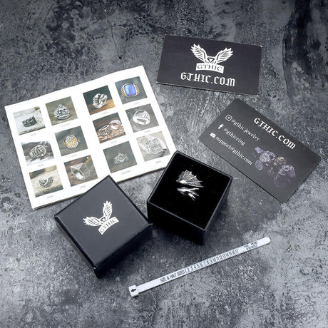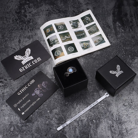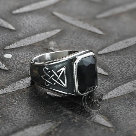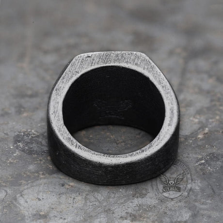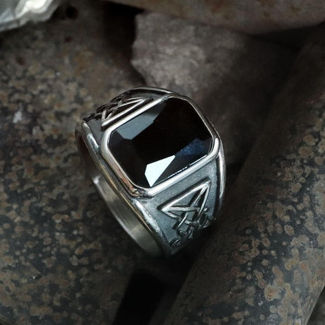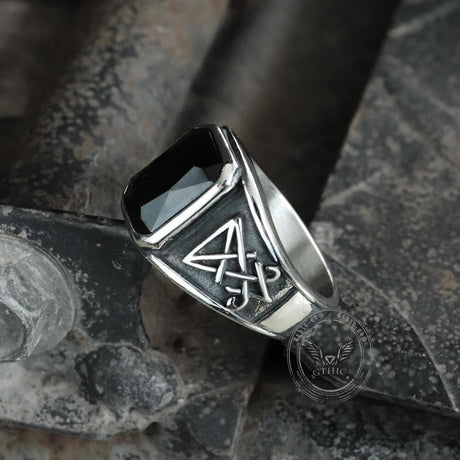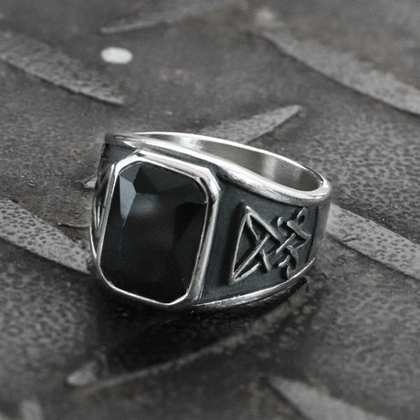 Lucifer Symbol Black Gem Stainless Steel Ring