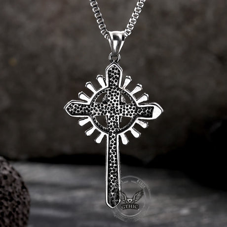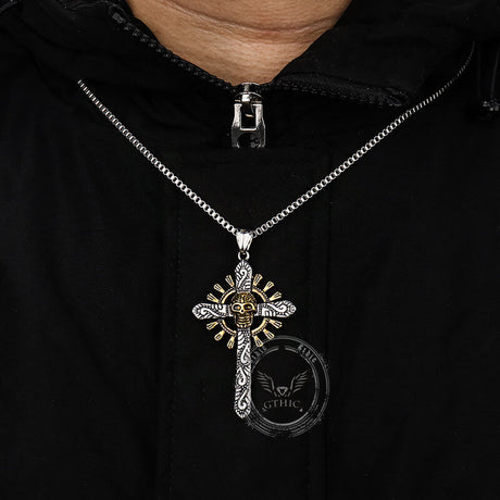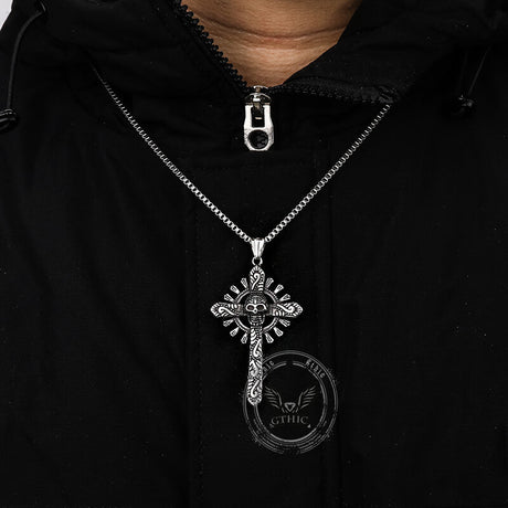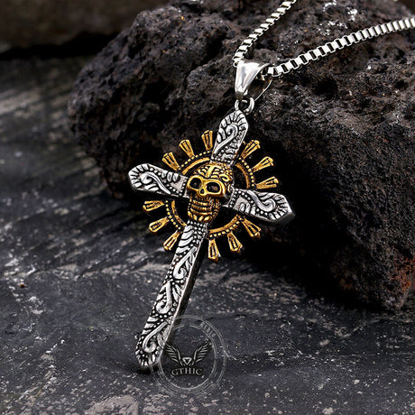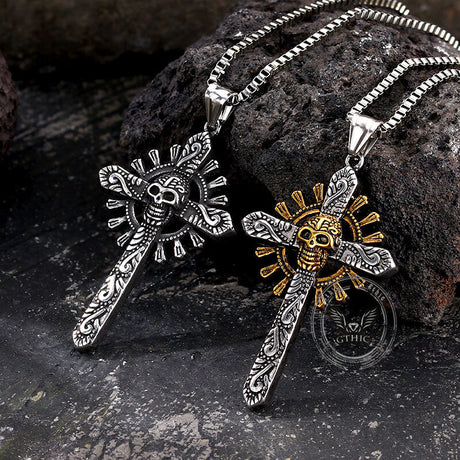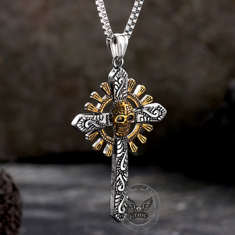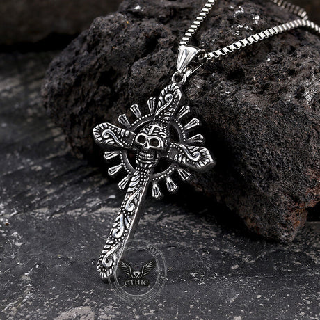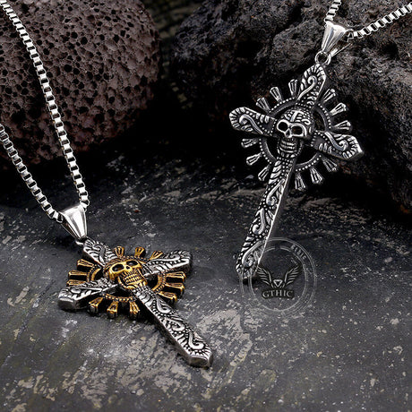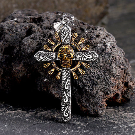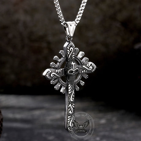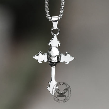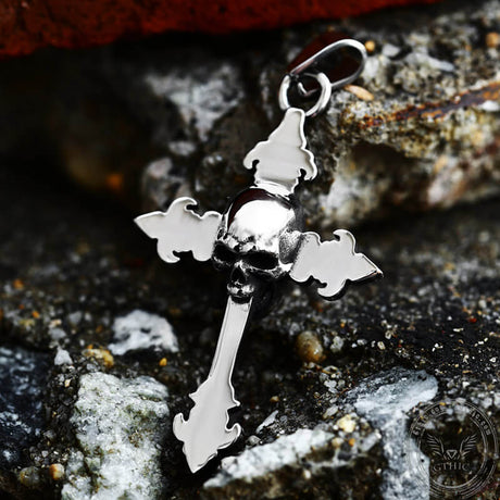 Gothic Cross Stainless Steel Skull Pendant