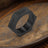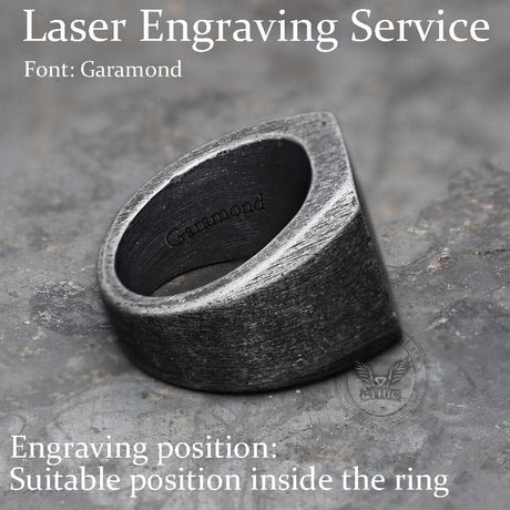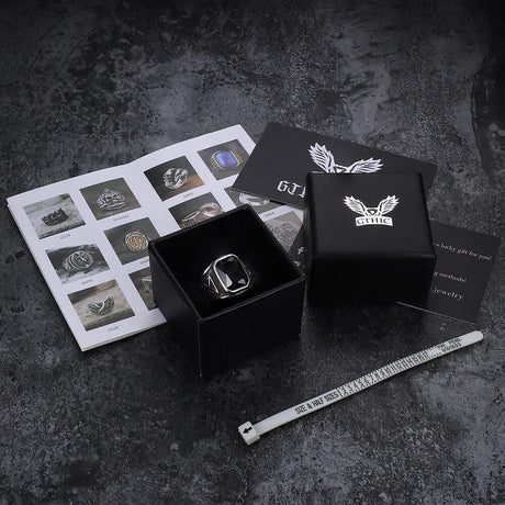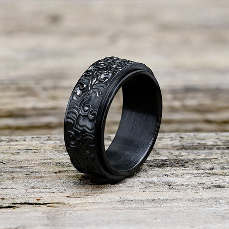Black Oval Agate Carved Stainless Steel Ring