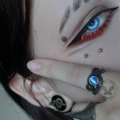 Black Gemstone Snake Stainless Steel Ring