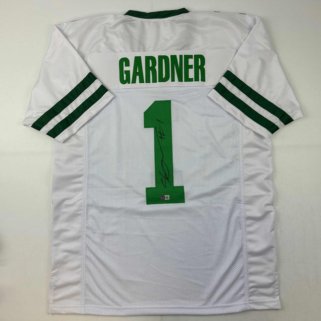 Autographed/Signed Ahmad Sauce Gardner New York White Retro Football Jersey Beckett BAS COA