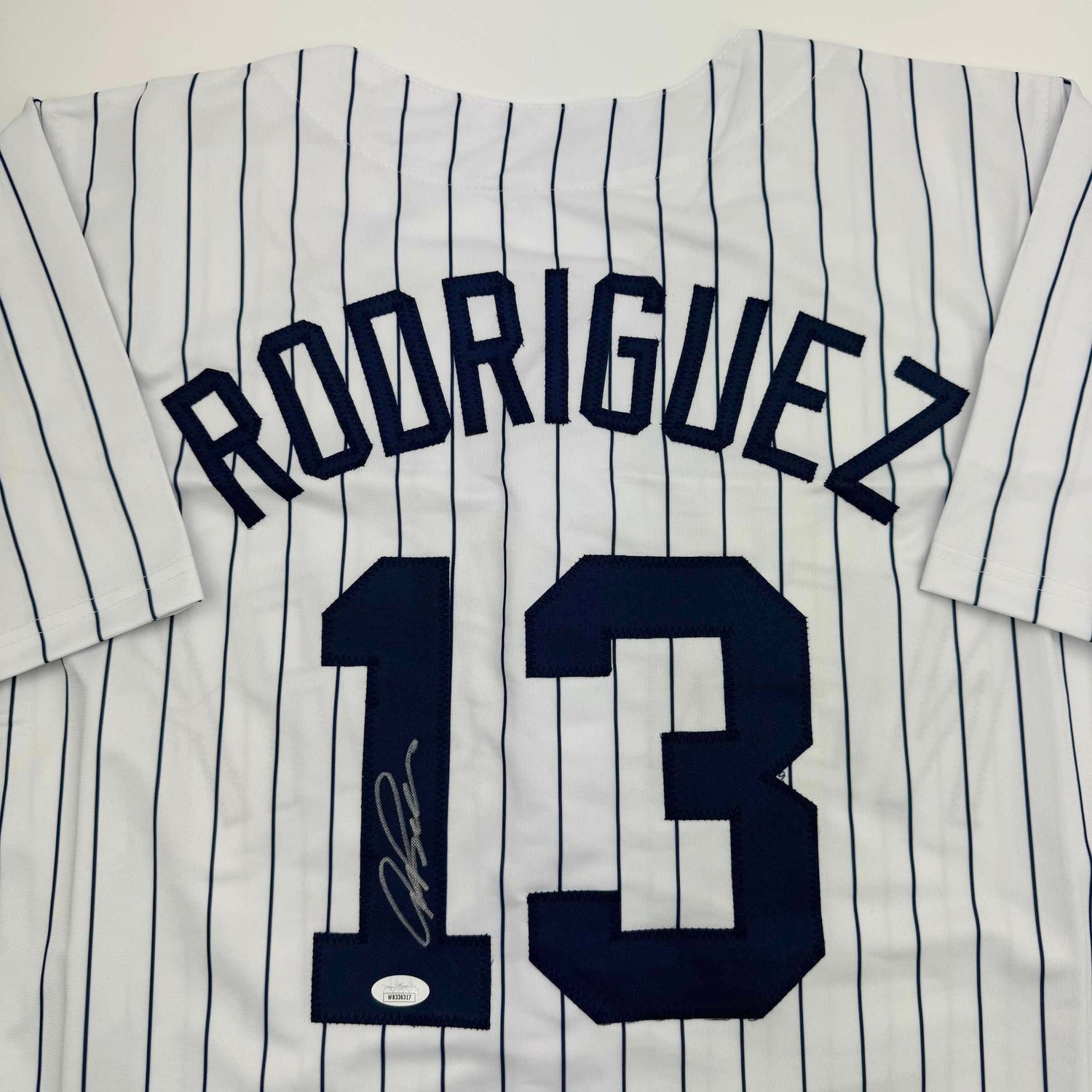 Autographed/Signed Alex Rodriguez New York Pinstripe Baseball Jersey JSA COA