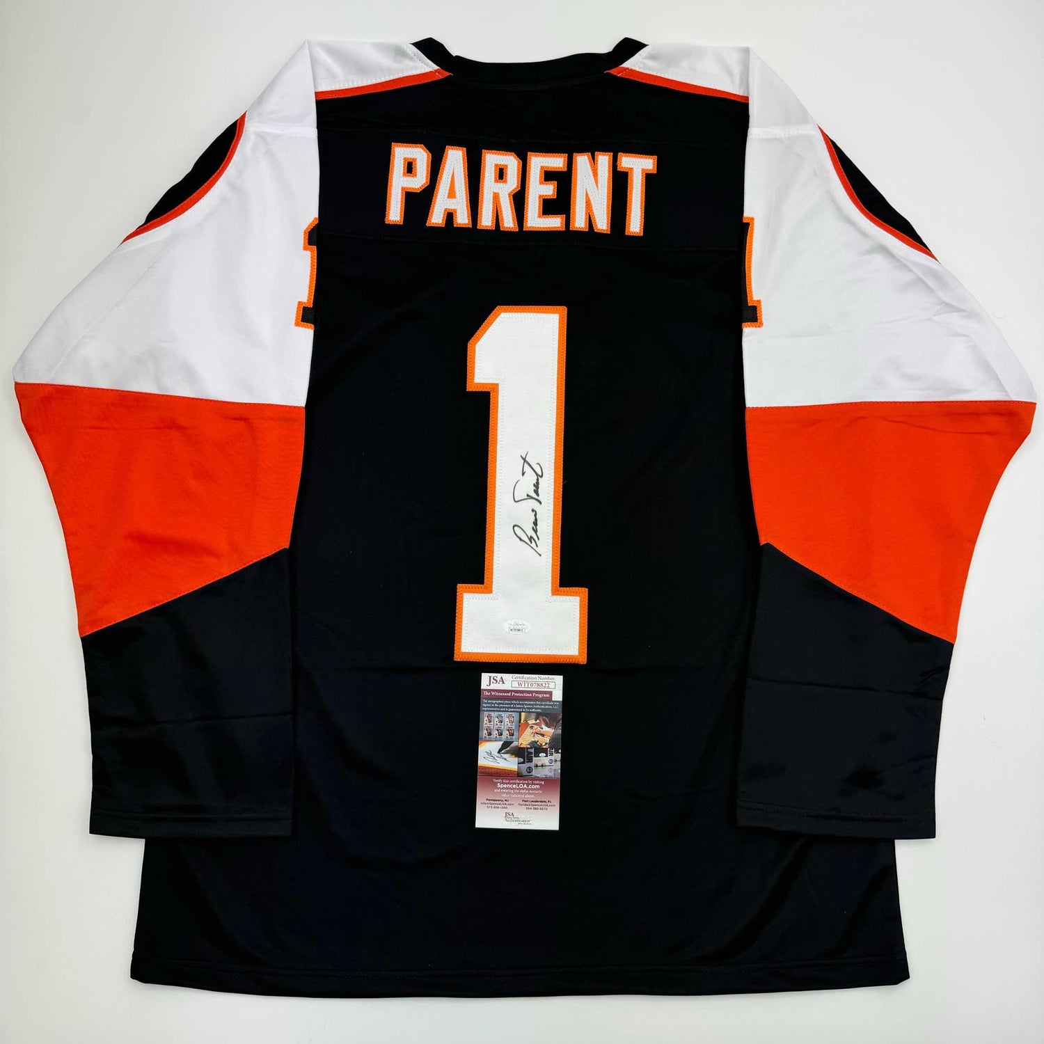 Autographed/Signed Bernie Parent Philadelphia Black Hockey Jersey JSA COA is backordered and will ship as soon as it is back in stock.