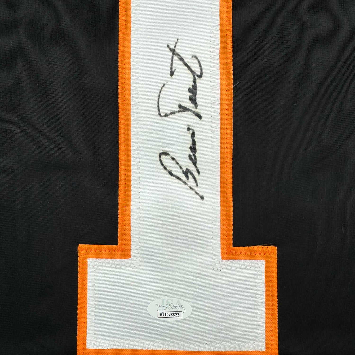 Autographed/Signed Bernie Parent Philadelphia Black Hockey Jersey JSA COA