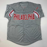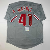 Autographed/Signed Charlie Manuel Philadelphia Grey Baseball Jersey PSA/DNA COA