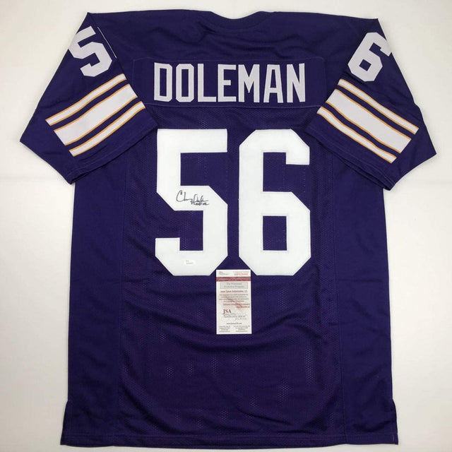 Autographed/Signed Chris Doleman HOF 12 Minnesota Purple Football Jersey JSA COA