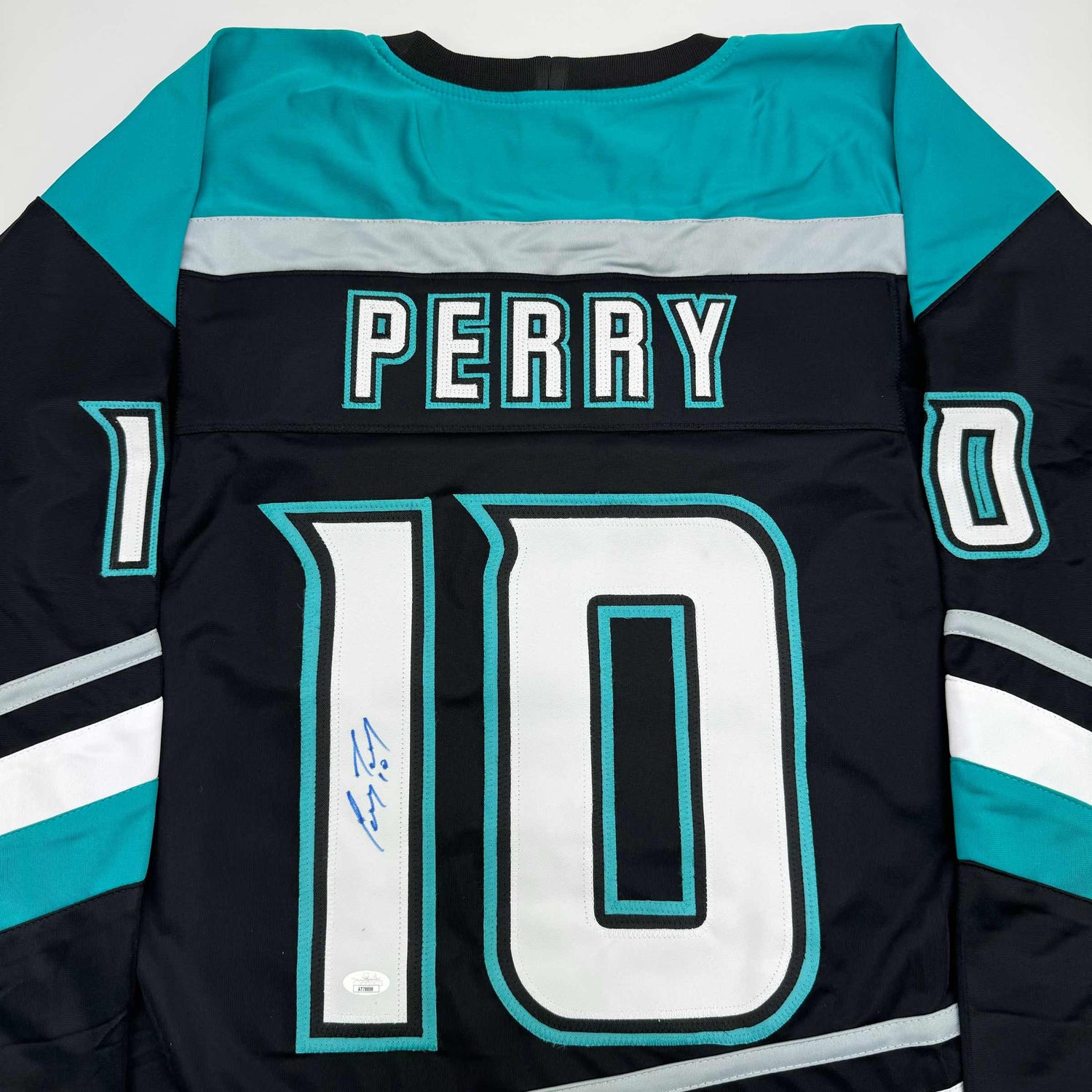 Autographed/Signed Corey Perry Anaheim Black Retro Hockey Jersey JSA COA