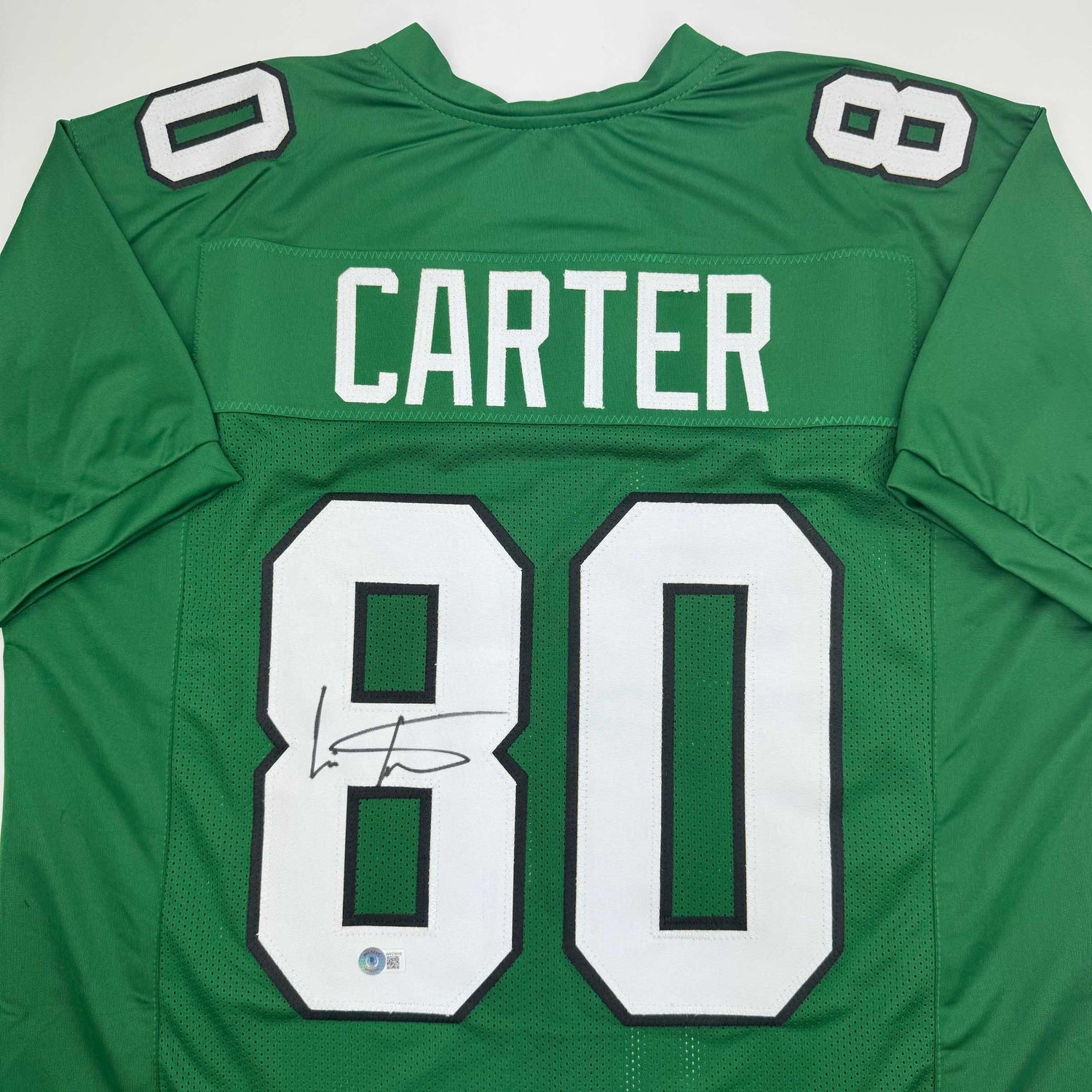 Autographed/Signed Cris Carter Philadelphia Kelly Green Football Jersey Beckett BAS COA
