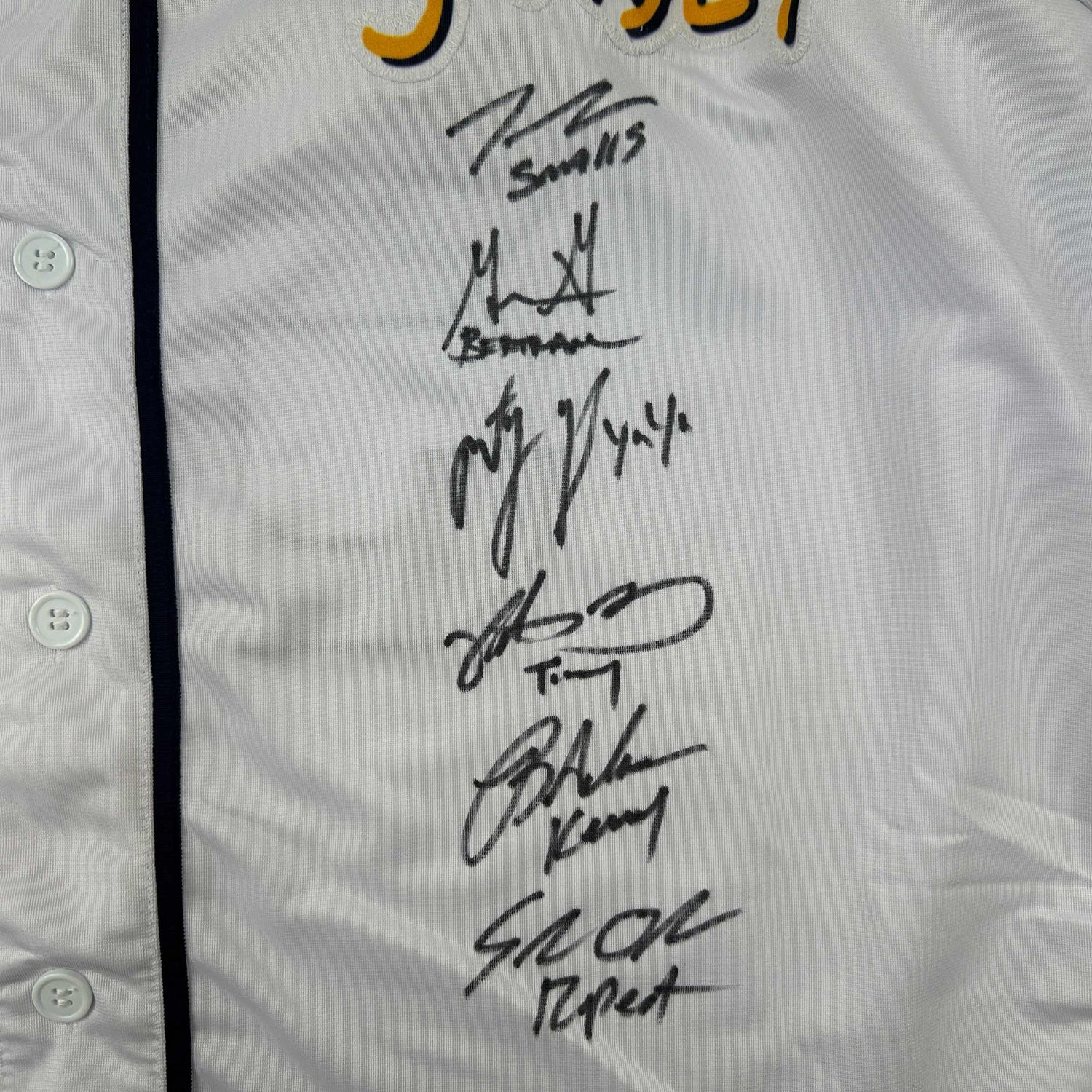 Autographed/Signed The Sandlot Movie 6x Cast Member Sigs White Baseball Jersey Beckett BAS COA