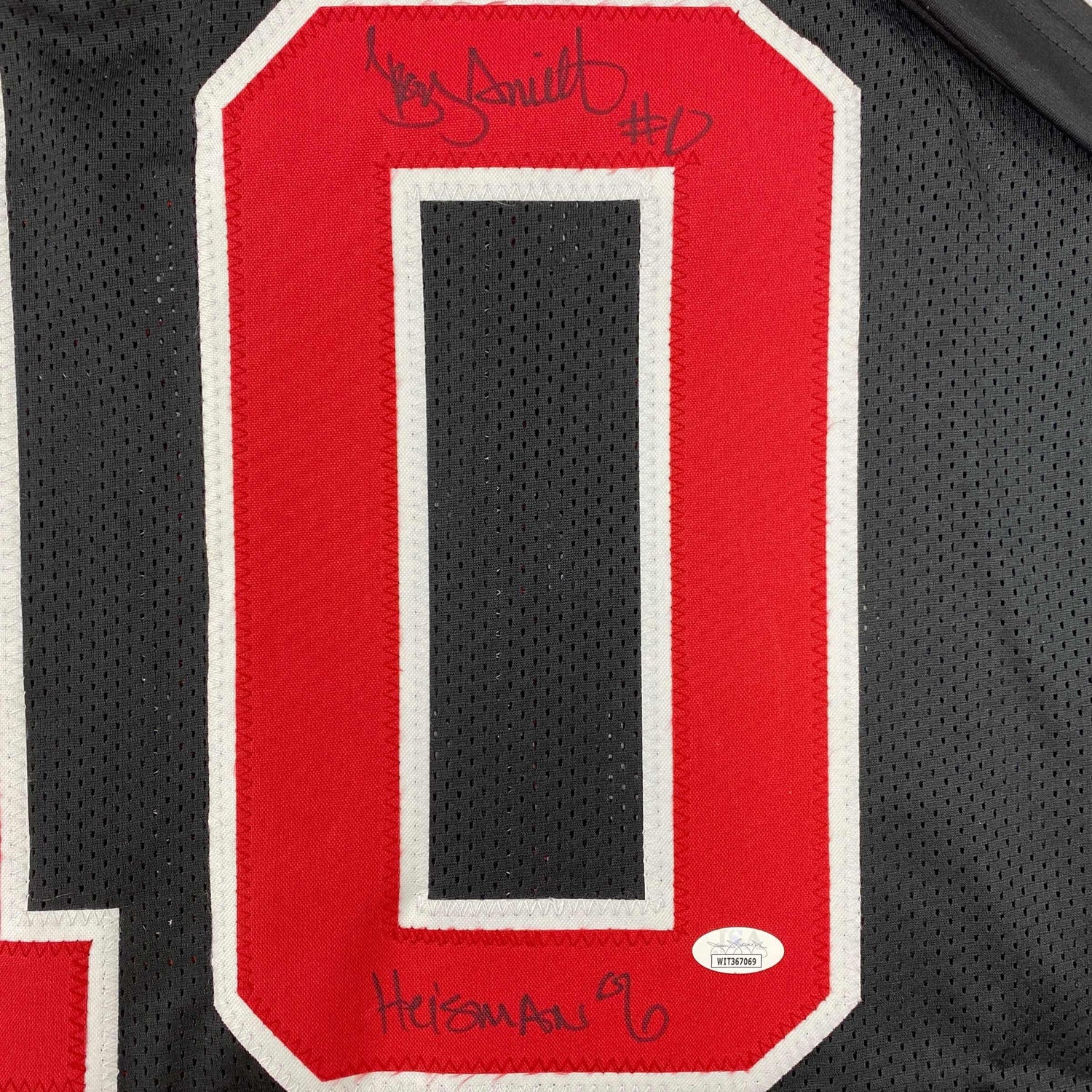 Autographed/Signed Troy Smith Heisman 06 Ohio State Black College Football Jersey JSA COA