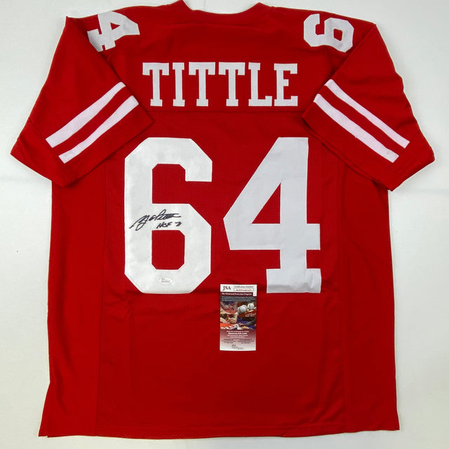 Autographed/Signed YA Y.A. Tittle HOF 71 #64 San Francisco Red Football Jersey JSA COA