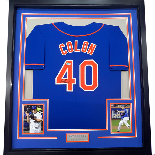 Framed Autographed/Signed Bartolo Colon 35x39 New York Blue Baseball Jersey Beckett BAS COA is backordered and will ship as soon as it is back in stock.