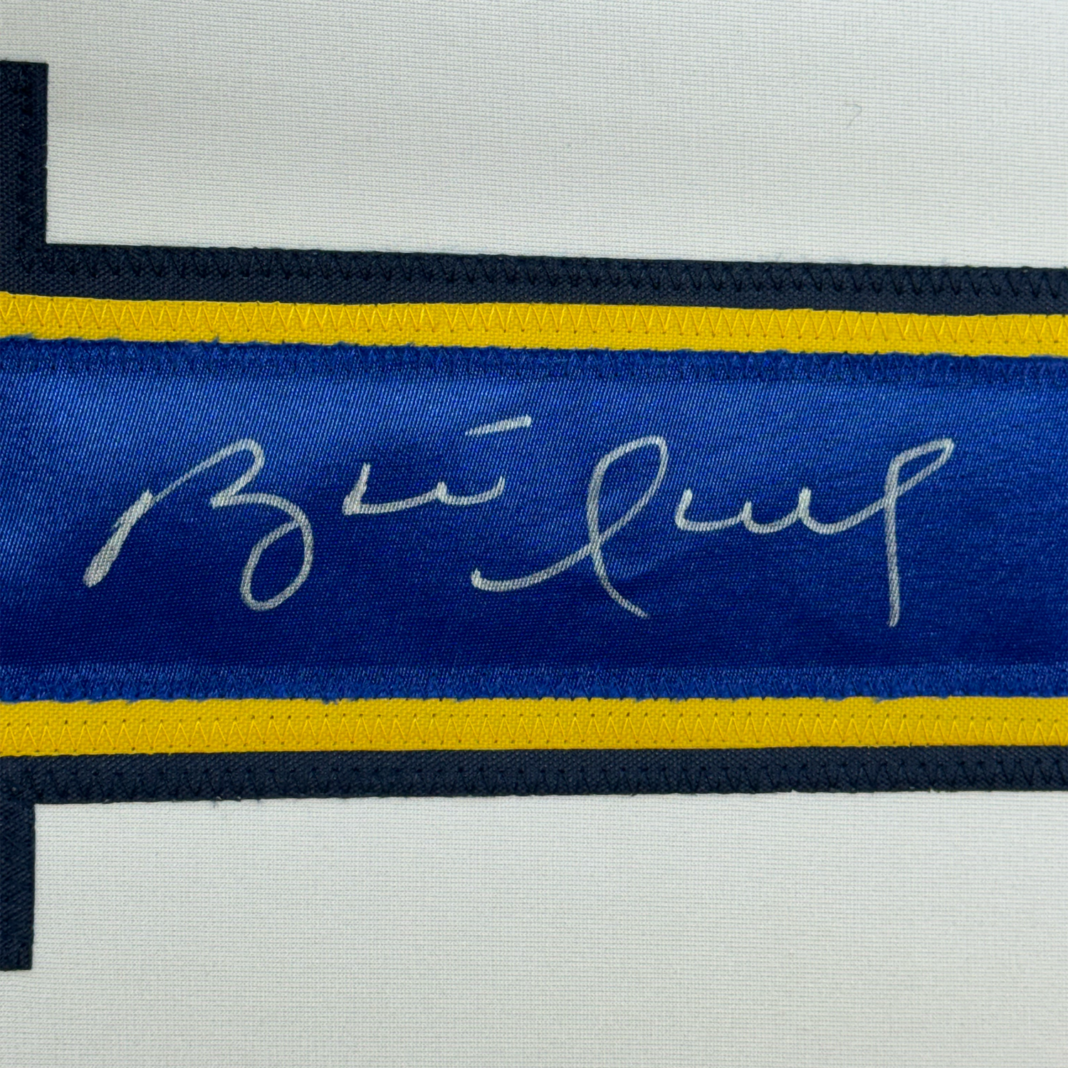 Framed Autographed/Signed Brett Hull 35x39 St. Louis White Hockey Jersey JSA COA