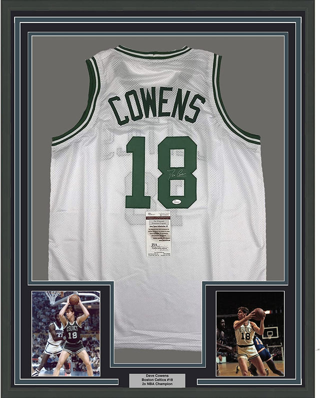Framed Autographed/Signed Dave Cowens 35x39 Boston White Basketball Jersey JSA COA