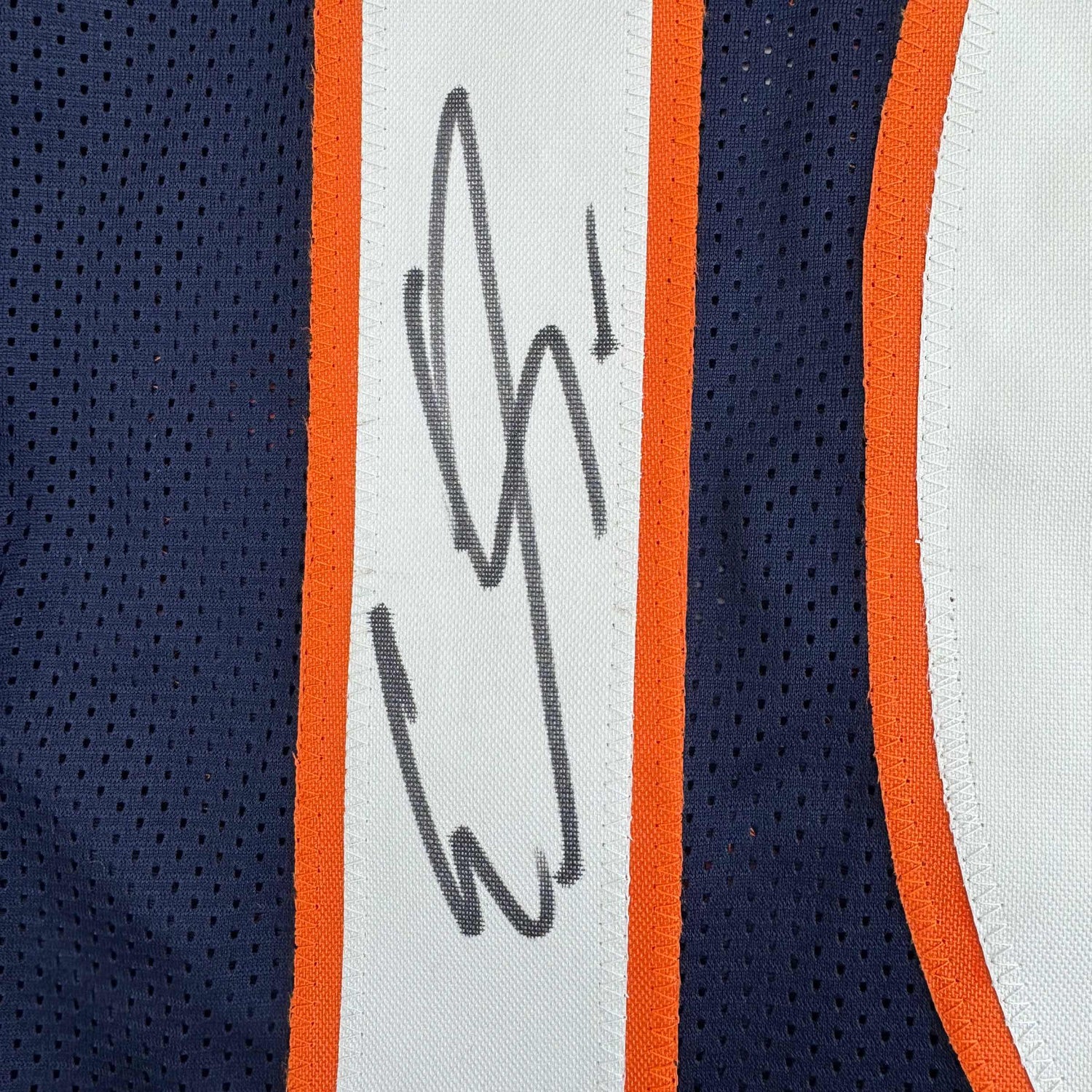 Framed Autographed/Signed Emmanuel Sanders 35x39 Denver Blue Football Jersey JSA COA