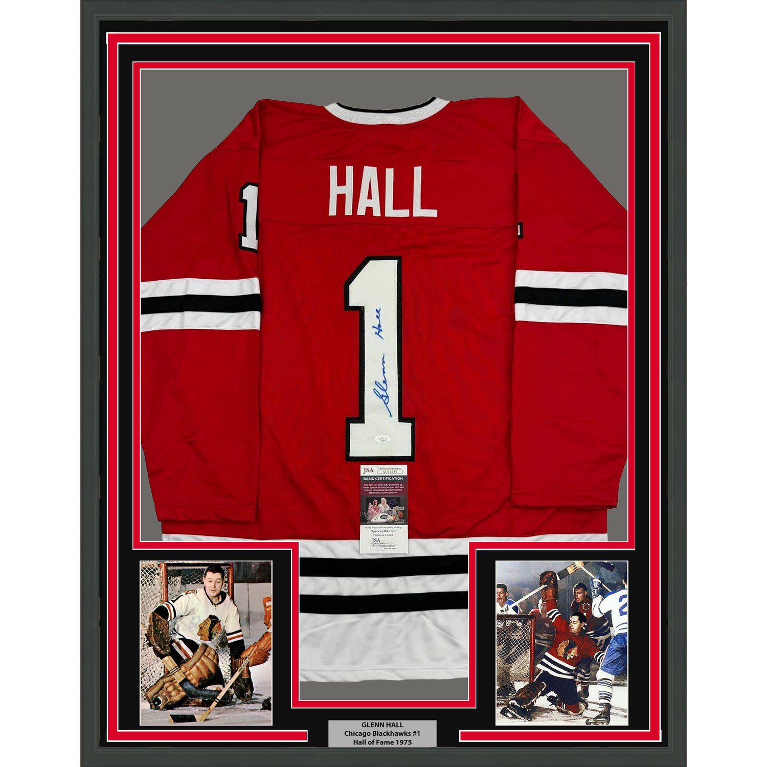 Framed Autographed/Signed Glenn Hall 35x39 Chicago Red Hockey Jersey JSA COA is backordered and will ship as soon as it is back in stock.