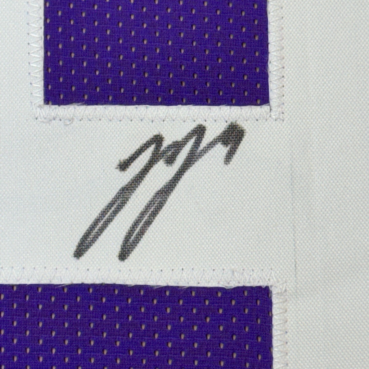 Framed Autographed/Signed J.J. JJ McCarthy 35x39 Minnesota Purple Football Jersey Beckett BAS COA