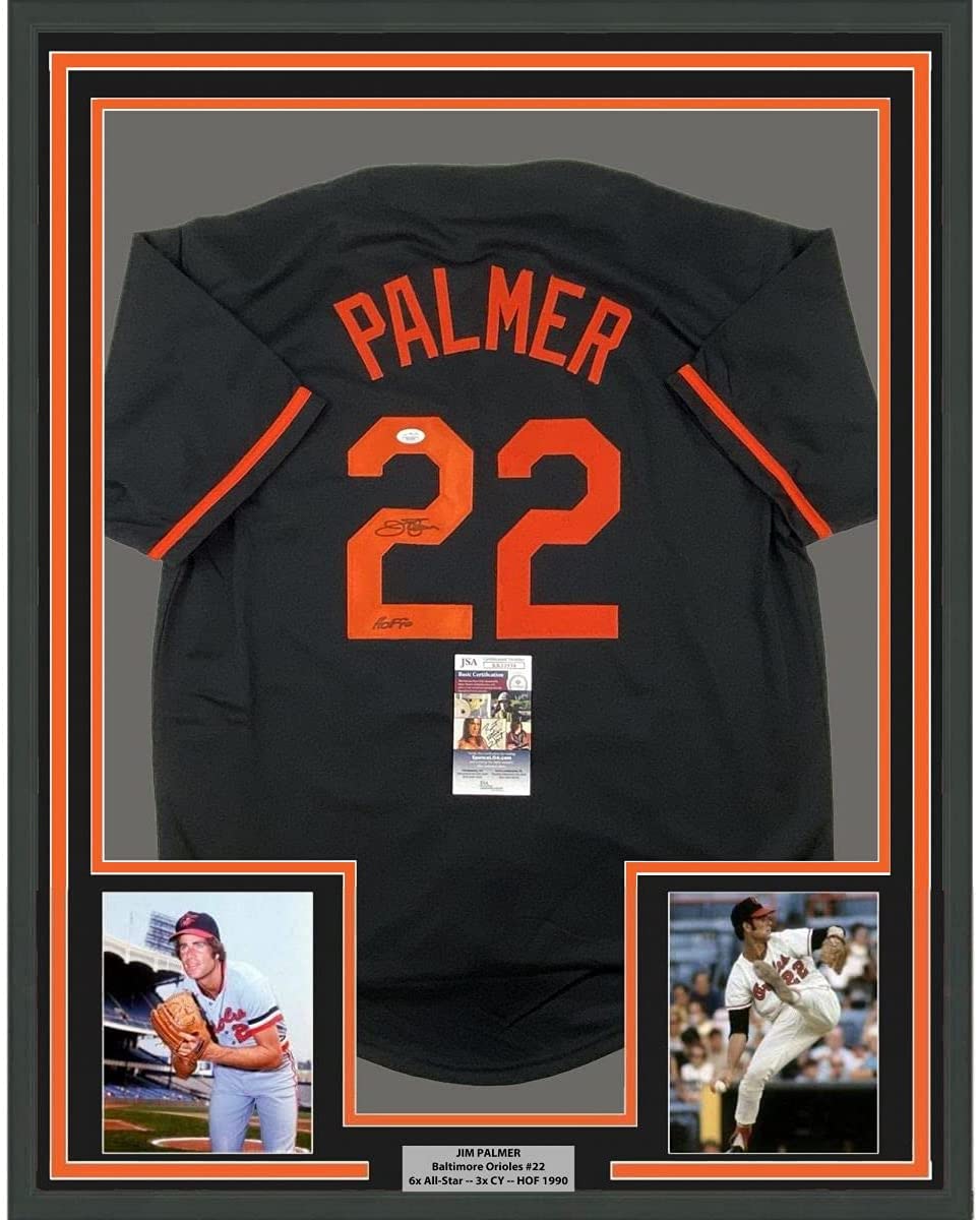 Framed Autographed/Signed Jim Palmer HOF 1990 35x39 Baltimore Black Baseball Jersey JSA COA is backordered and will ship as soon as it is back in stock.