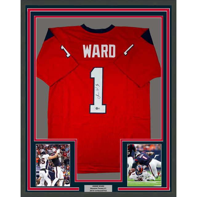 Framed Autographed/Signed Jimmie Ward 35x39 Houston Red Football Jersey Beckett BAS COA is backordered and will ship as soon as it is back in stock.