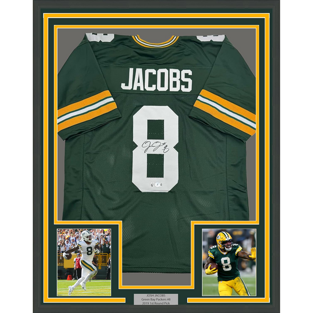 Framed Autographed/Signed Josh Jacobs 35x39 Green Bay Green Football Jersey Beckett BAS COA is backordered and will ship as soon as it is back in stock.
