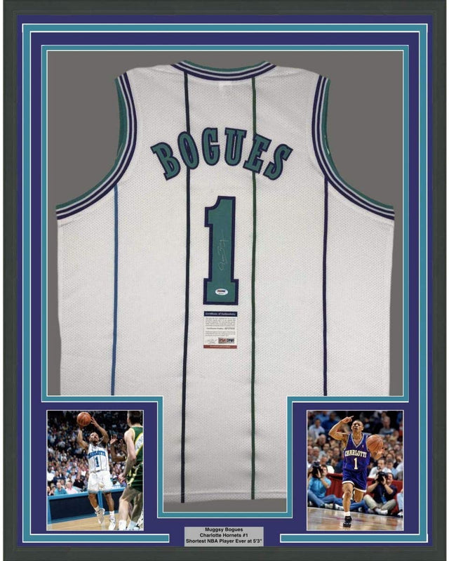Framed Autographed/Signed Muggsy Bogues 35x39 Charlotte White Basketball Jersey PSA/DNA COA is backordered and will ship as soon as it is back in stock.
