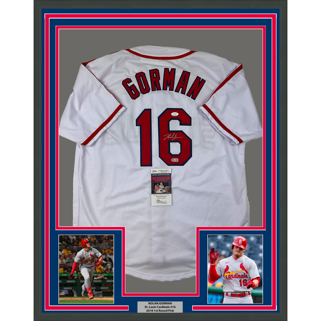 Framed Autographed/Signed Nolan Gorman 35x39 St. Louis White Baseball Jersey JSA COA is backordered and will ship as soon as it is back in stock.