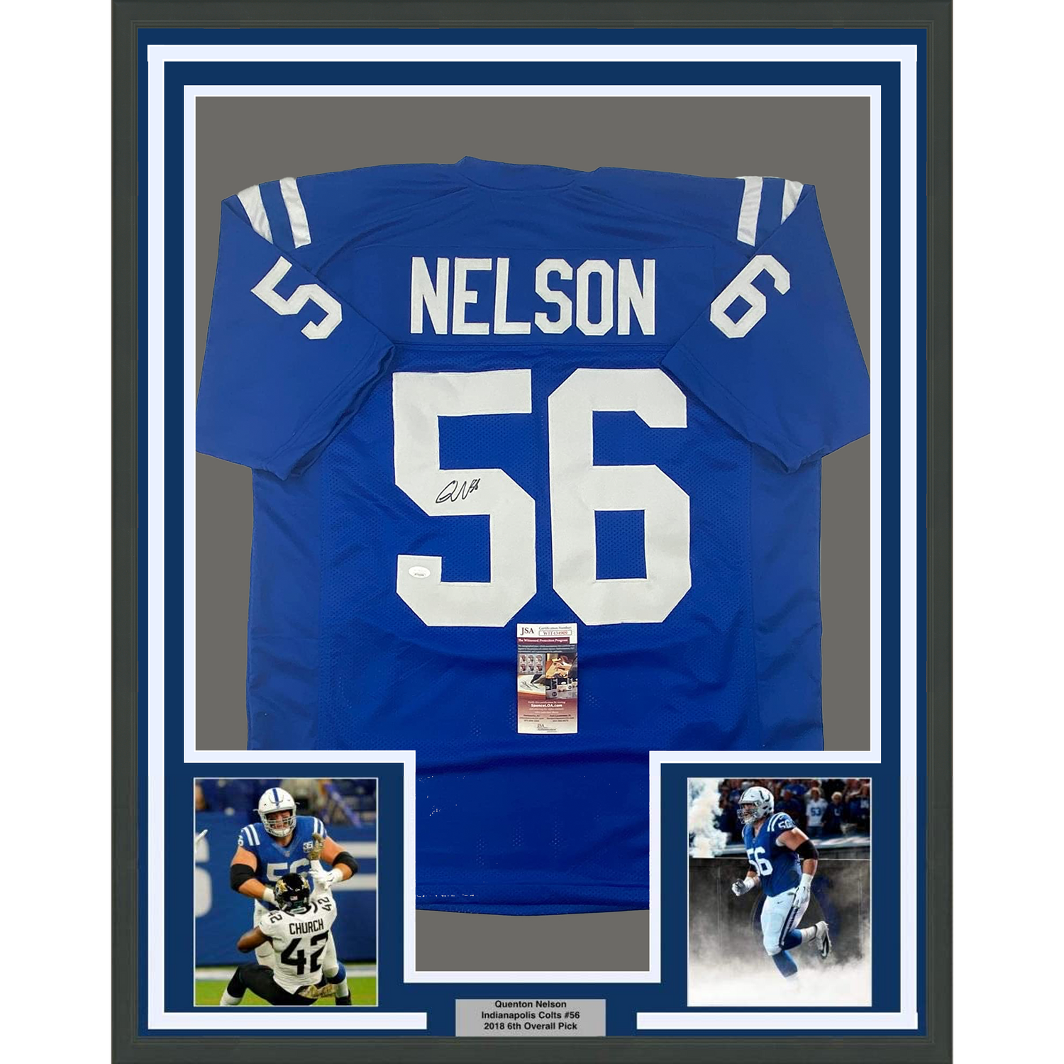 Framed Autographed/Signed Quenton Nelson 35x39 Indianapolis Blue Football Jersey JSA COA is backordered and will ship as soon as it is back in stock.