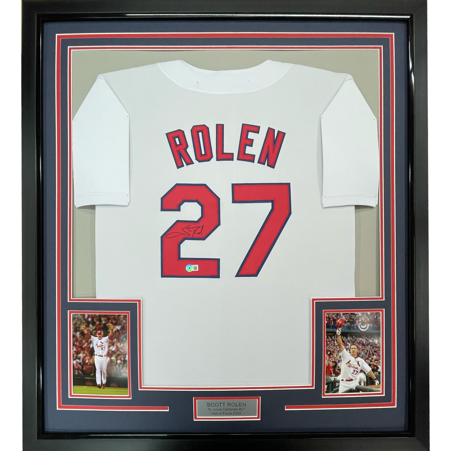 Framed Autographed/Signed Scott Rolen 35x39 St. Louis White Baseball Jersey Beckett BAS COA