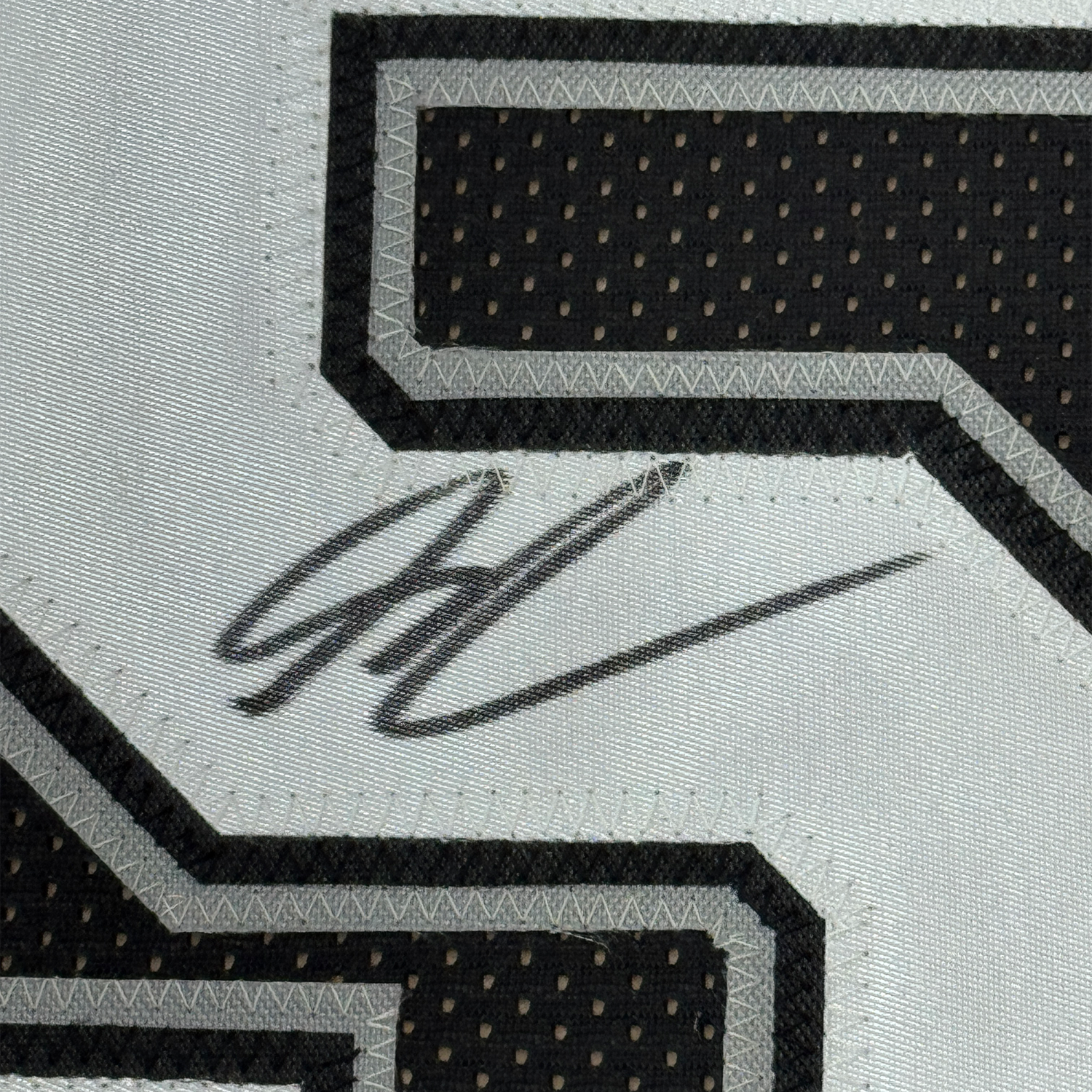 Framed Autographed/Signed Stephon Castle 35x39 San Antonio Black Basketball Jersey JSA COA