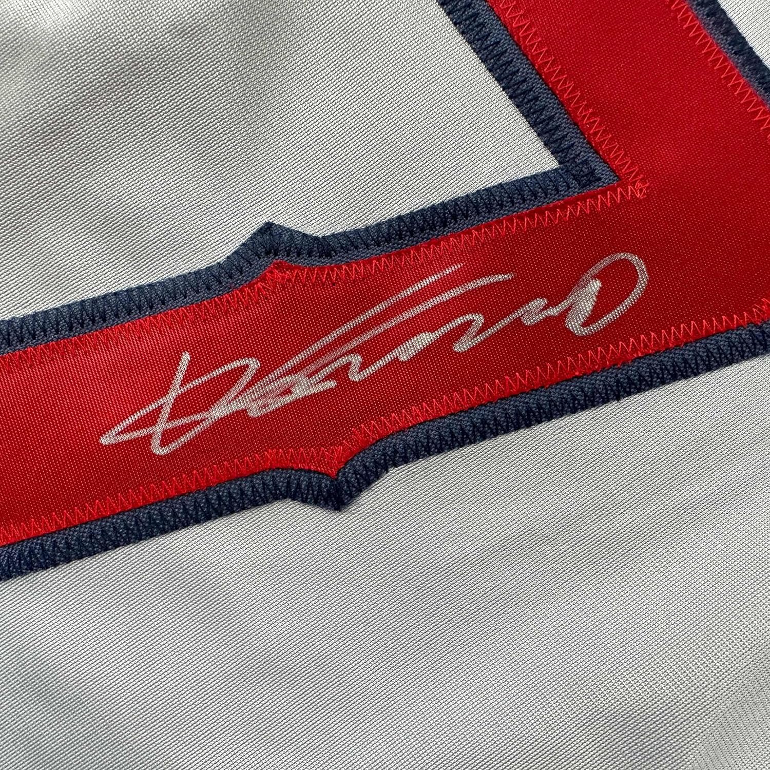 Framed Autographed/Signed Vladimir Vlad 35x39 Guerrero Los Angeles LA Anaheim Grey Baseball Jersey Beckett BAS COA