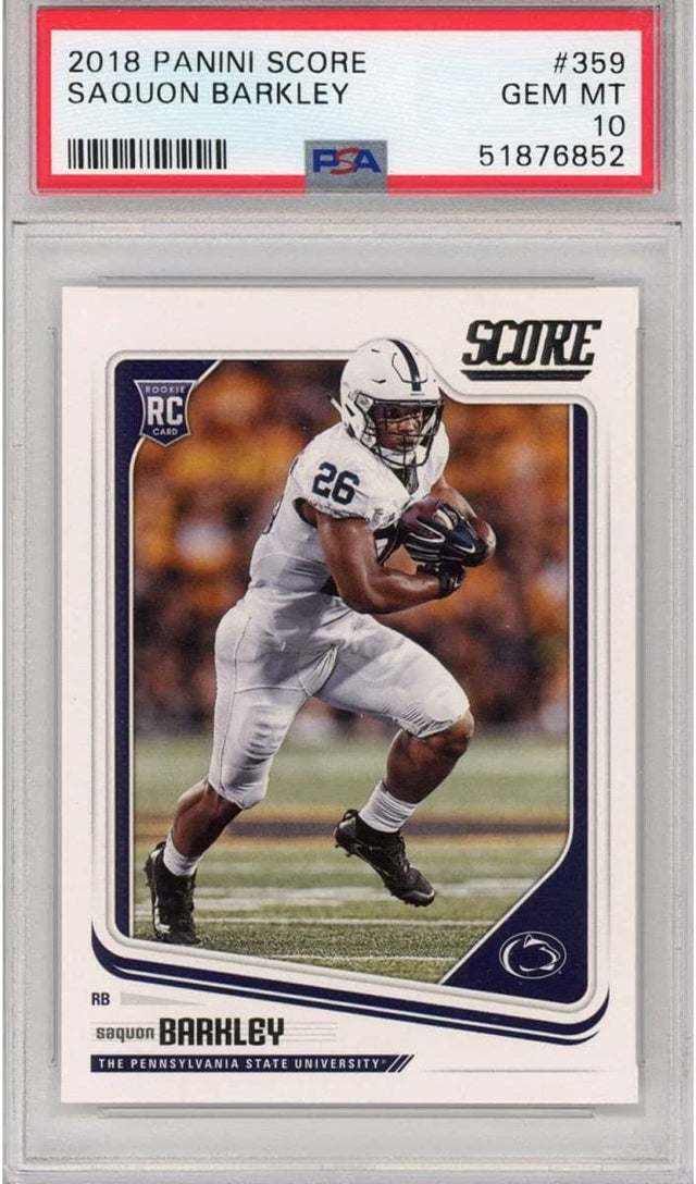 Graded 2018 Panini Score Saquon Barkley #359 Rookie RC Football Card PSA 10 Gem Mint is backordered and will ship as soon as it is back in stock.