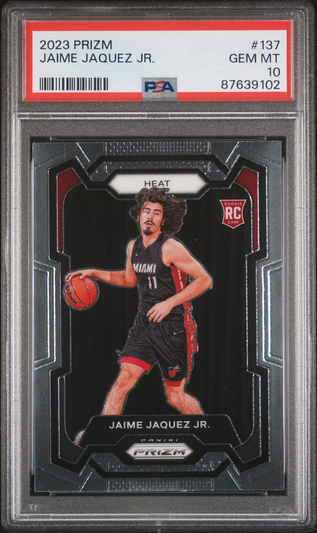 Graded 2023 Panini Prizm Jaime Jaquez Jr #137 Rookie RC Basketball Card PSA 10 Gem Mint is backordered and will ship as soon as it is back in stock.