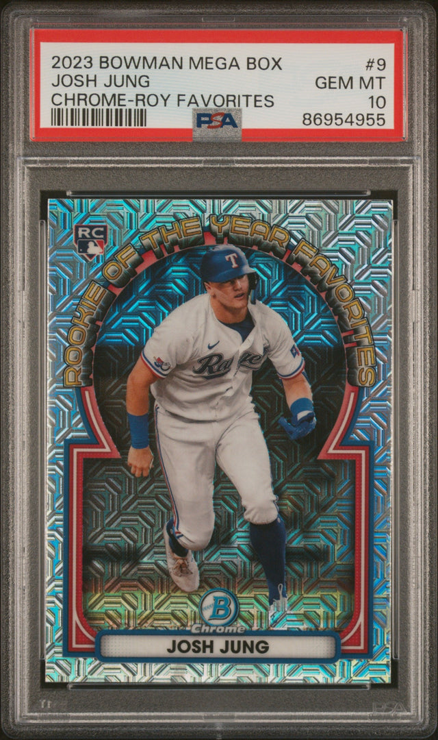 Graded 2023 Topps Bowman M/B Josh Jung #9 Chrome ROY Favorites Rookie RC Baseball Card PSA 10 Gem Mint