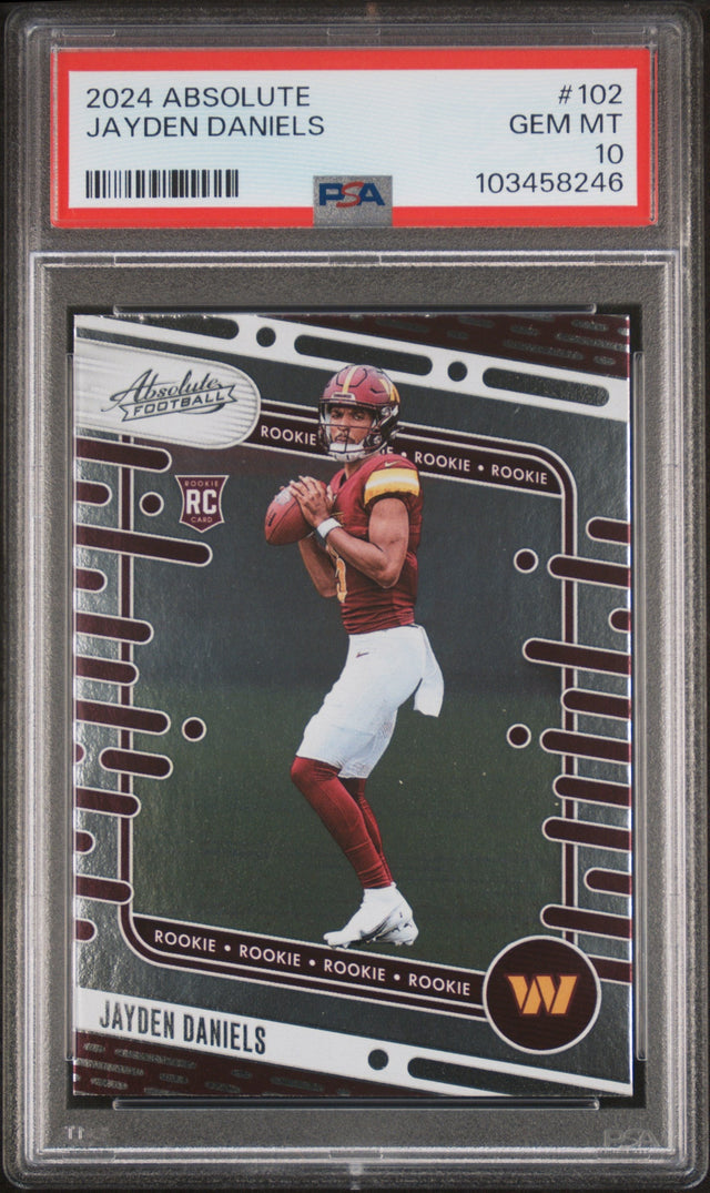 Graded 2024 Panini Absolute Jayden Daniels #102 Rookie RC Football Card PSA 10 Gem Mint is backordered and will ship as soon as it is back in stock.
