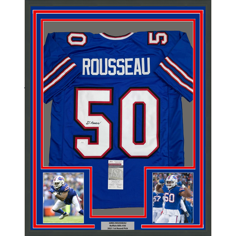 Framed Autographed/Signed Greg Rousseau 35x39 B...