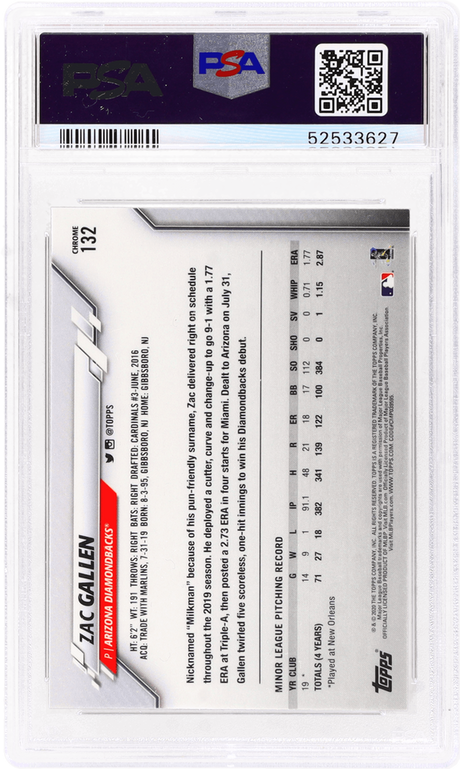 Graded 2020 Topps Chrome Zac Gallen #132 Rookie...