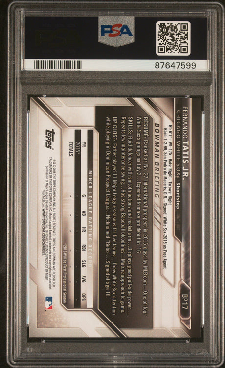 Graded 2016 Topps Bowman Prospects Fernando Tat...