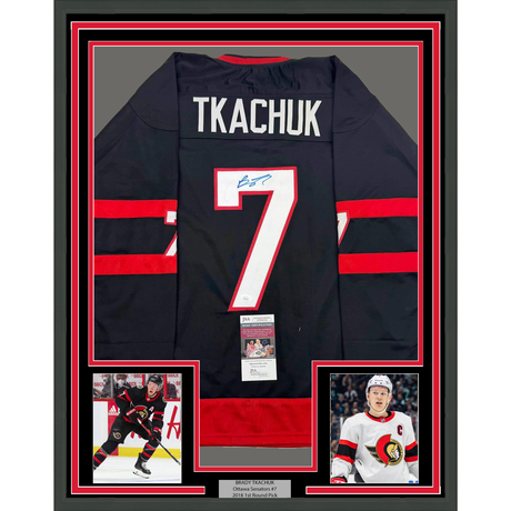Framed Autographed/Signed Brady Tkachuk 35x39 O...