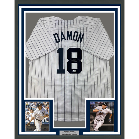 Framed Autographed/Signed Johnny Damon 35x39 Ne...