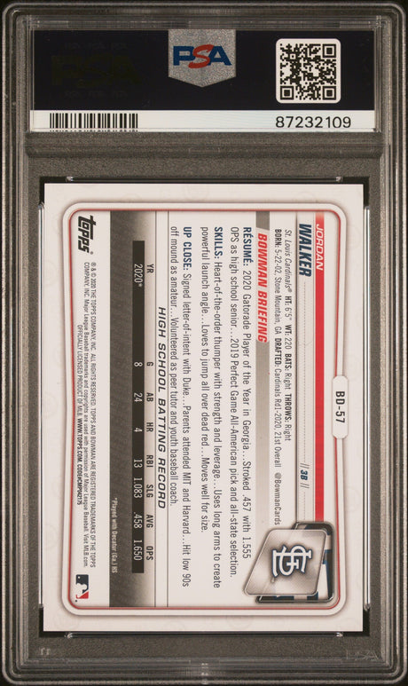 Graded 2020 Topps Bowman Draft Jordan Walker #B...