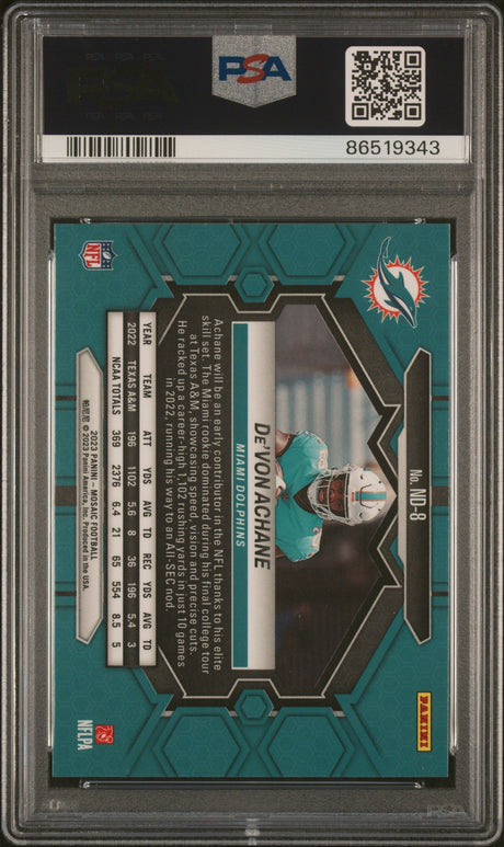 Graded 2023 Panini Mosaic Devon Achane #ND8 NFL...