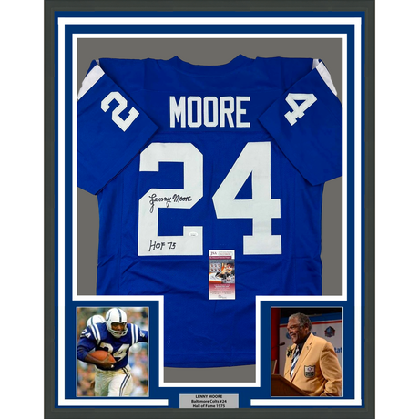 Framed Autographed/Signed Lenny Moore 35x39 HOF...